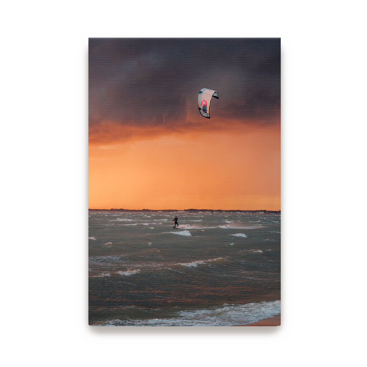 As a thunderstorm rolled in over Dewey Beach at sunset, the sky ignited with a fiery glow, casting an intense contrast between golden-hour light and the storm’s darkening clouds. The wind howled, nearly knocking me off balance as I stepped out of my car, but amidst the chaos, I spotted a lone kite surfer carving through the choppy Atlantic. With conditions this powerful, I knew I had only moments to capture the shot before he brought his kite down.