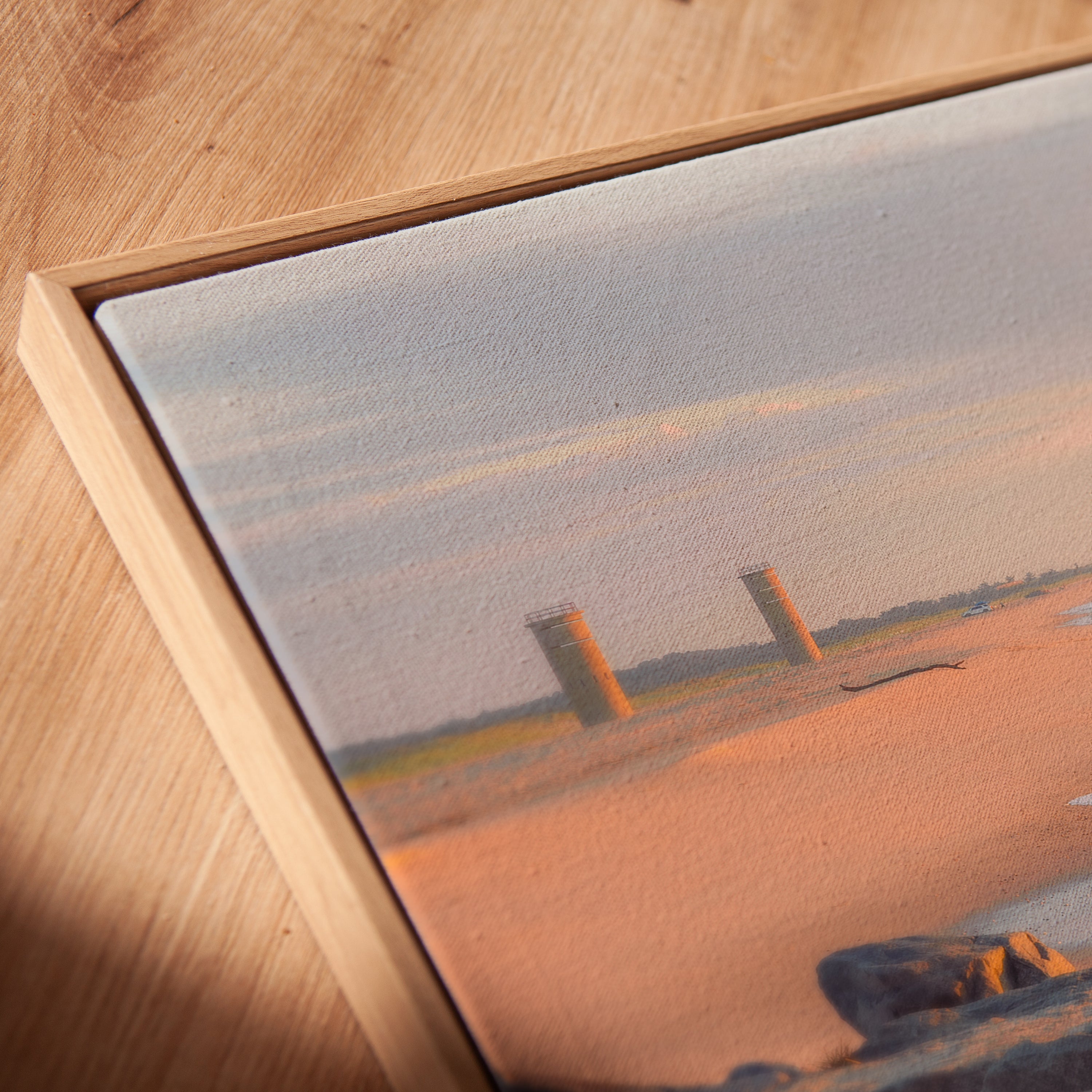 Each frame we craft is a masterpiece in itself, meticulously handcrafted from solid wood to complement and enhance the beauty of your artwork. To safeguard your investment and maintain the integrity of the colors, we use optical-grade, UV-shielding acrylic that provides superior protection while maintaining the clarity of glass. These elegant frames not only add sophistication but also offer long-lasting preservation of your artwork’s vibrancy.