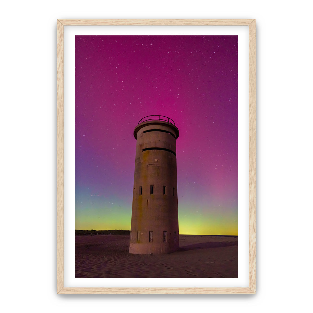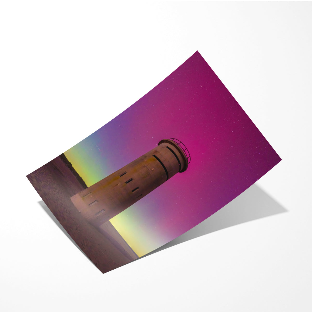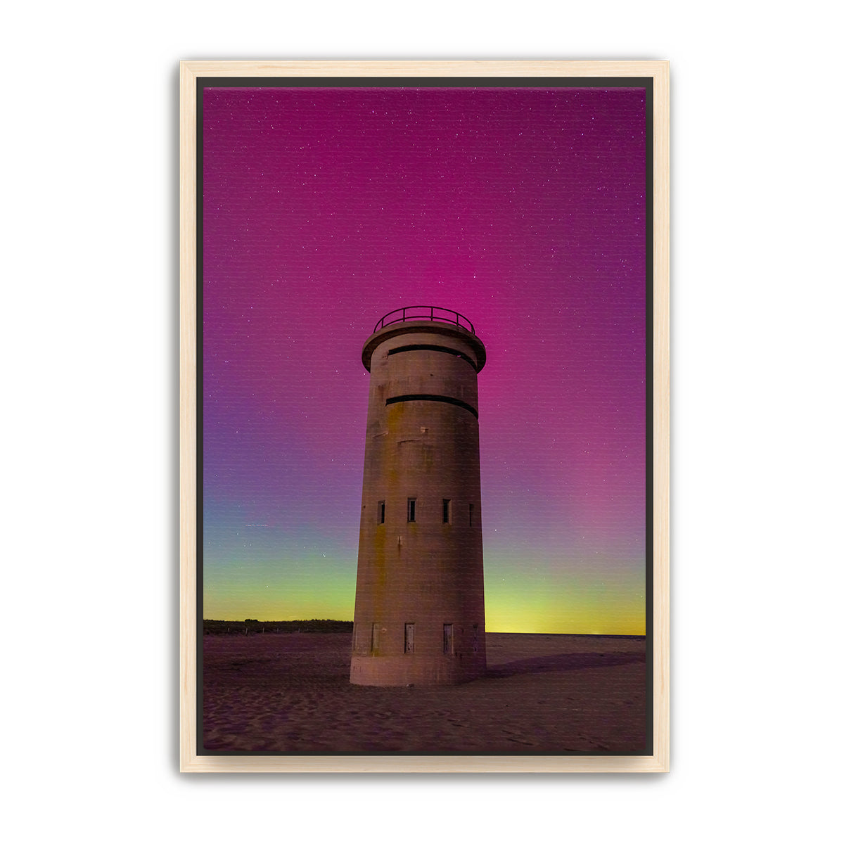 Available as a print, framed print, canvas, or framed canvas, “Standing Tall” highlights the unexpected beauty of the Northern Lights along Delaware’s coastline, a truly memorable moment at this iconic site.