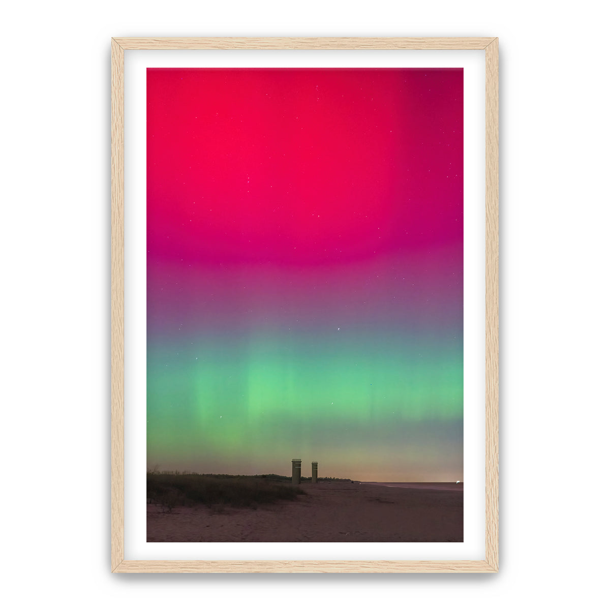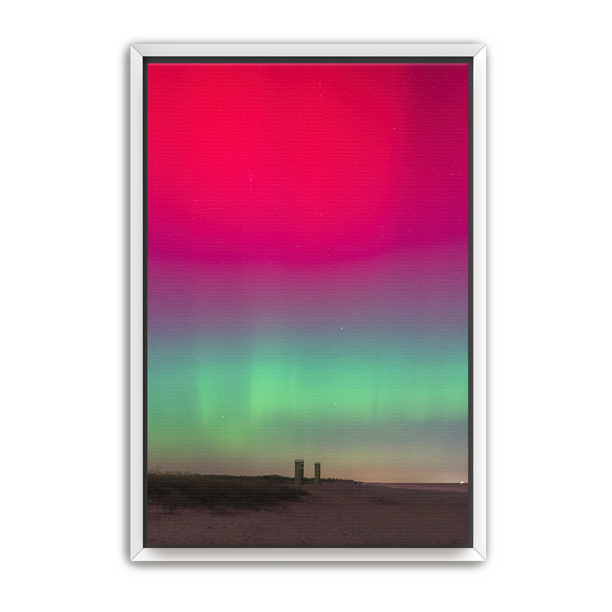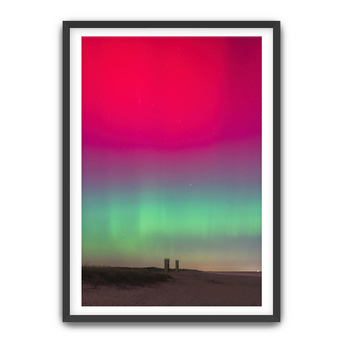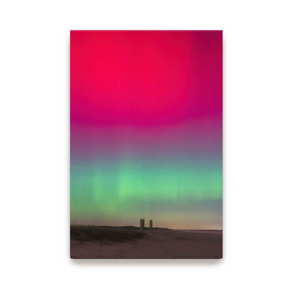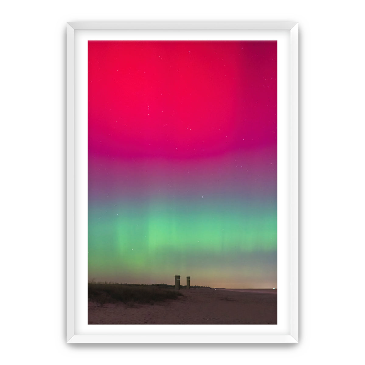 Experience the wonder and awe of the Northern Lights with “Grand View,” a breathtaking photograph taken at Gordon’s Pond State Park in Rehoboth Beach, Delaware. This incredible image captures a rare sight—the Northern Lights illuminating the sky above the iconic World War 2 towers, a moment that left me in amazement after years of working at this location. Witnessing the lights in this unexpected place was truly extraordinary.