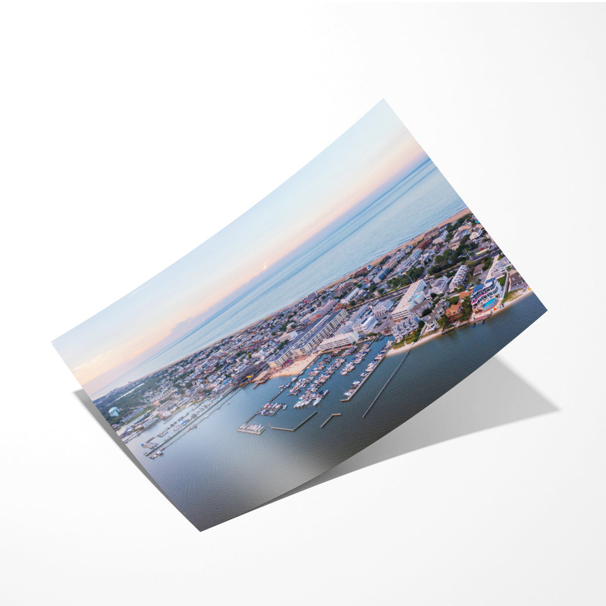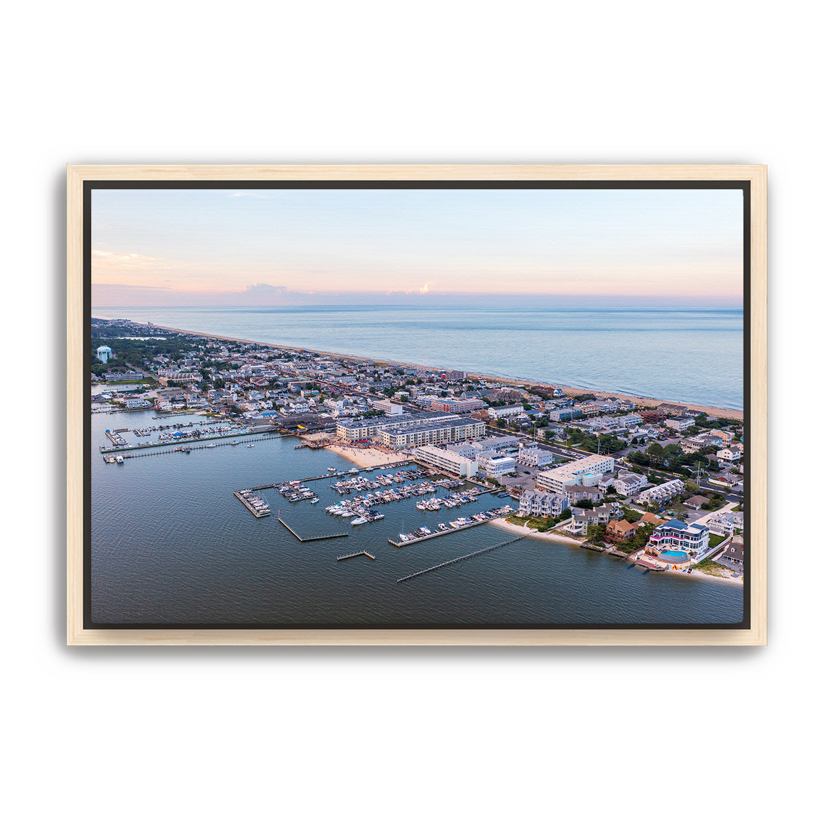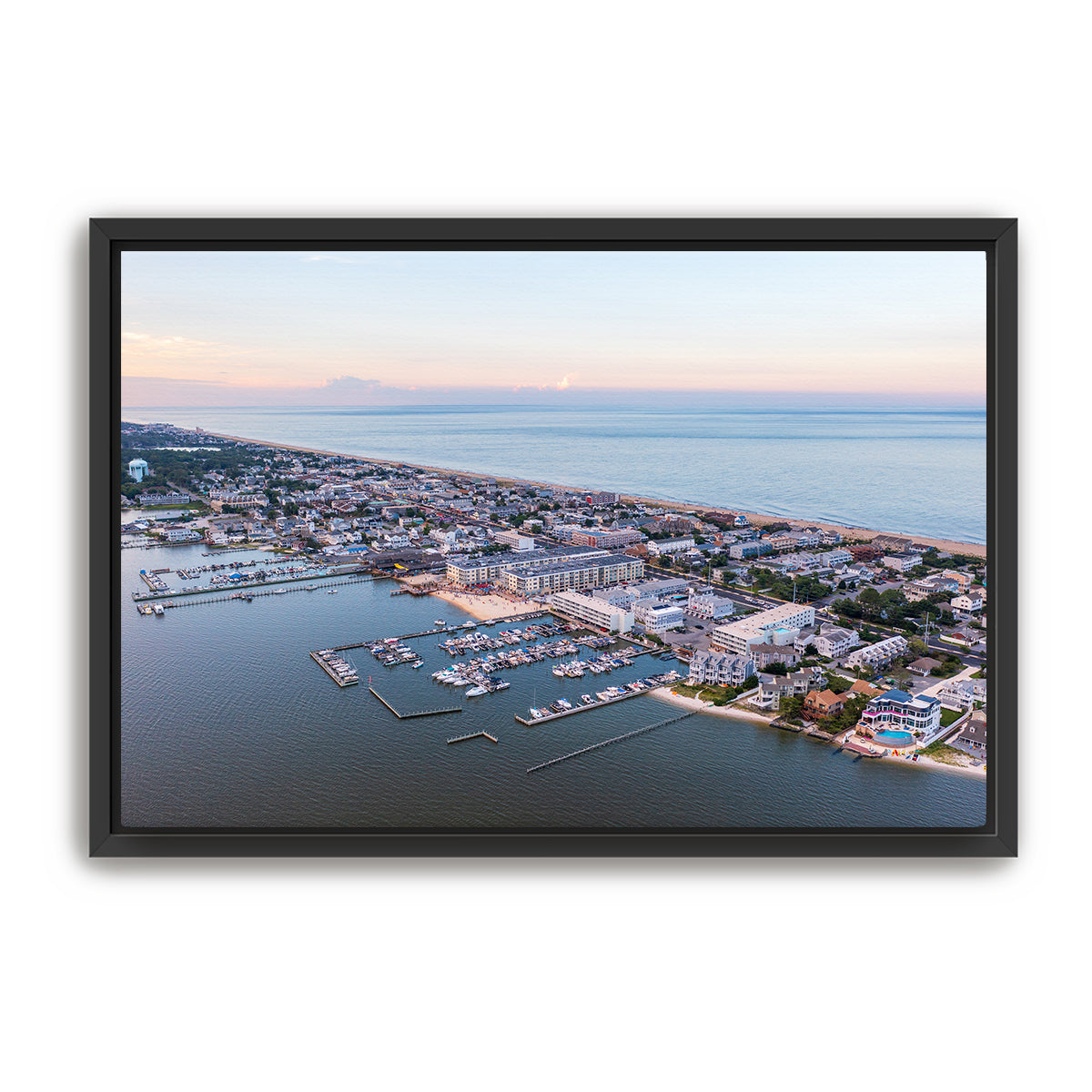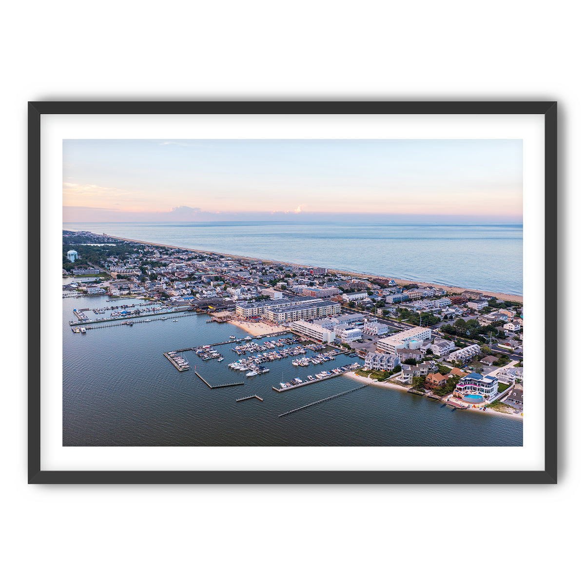 This aerial perspective captures Dewey Beach’s perfect balance of peaceful twilight beauty and lively beach life. The boats are docked in the bay, the streets are quiet for now, but the energy of the night is just beginning to build as the vibrant beach town prepares for another unforgettable evening.