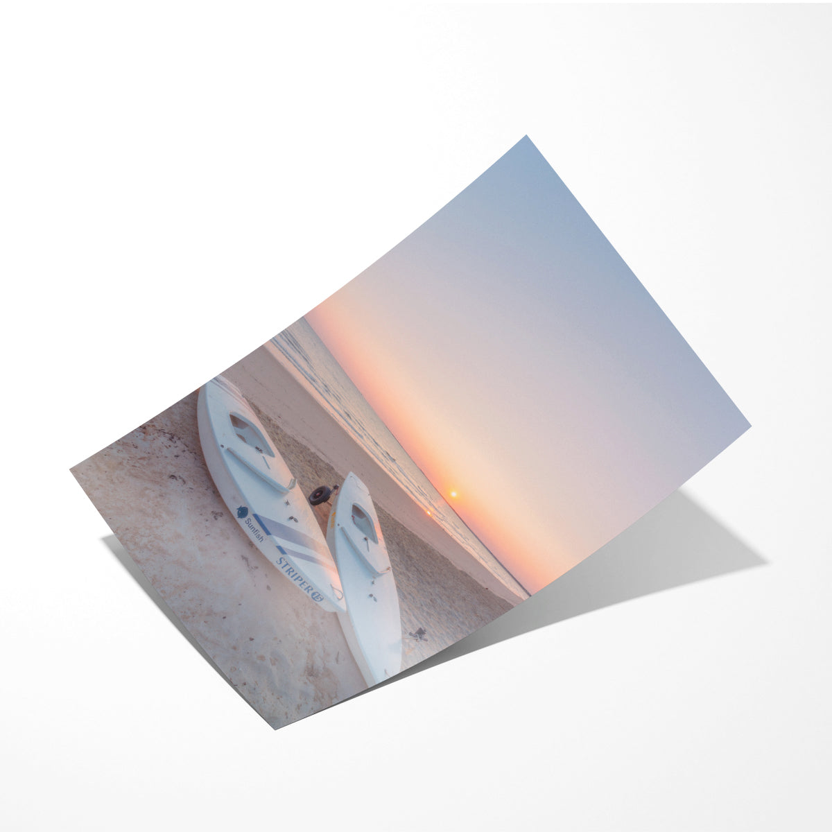 Capture the serene beauty of a pastel morning with “Sunrise Sailboats,” photographed in Lewes, Delaware, just outside the Lewes Yacht and Country Club and Roosevelt Inlet. This peaceful scene showcases two sailboats resting on the sandy shore as the soft morning light casts a refreshing glow across the horizon. The pink and pastel hues of the sky create a calming atmosphere, making this a perfect piece for bringing light and tranquility into your space.