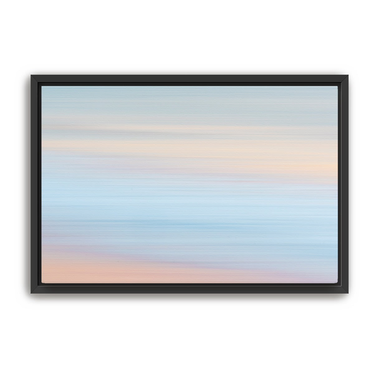 • Framed stretched canvases are mounted in a floating frame as pictured above (borderless with no matting)