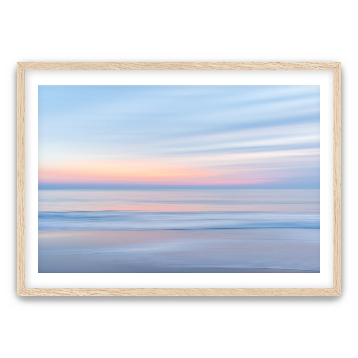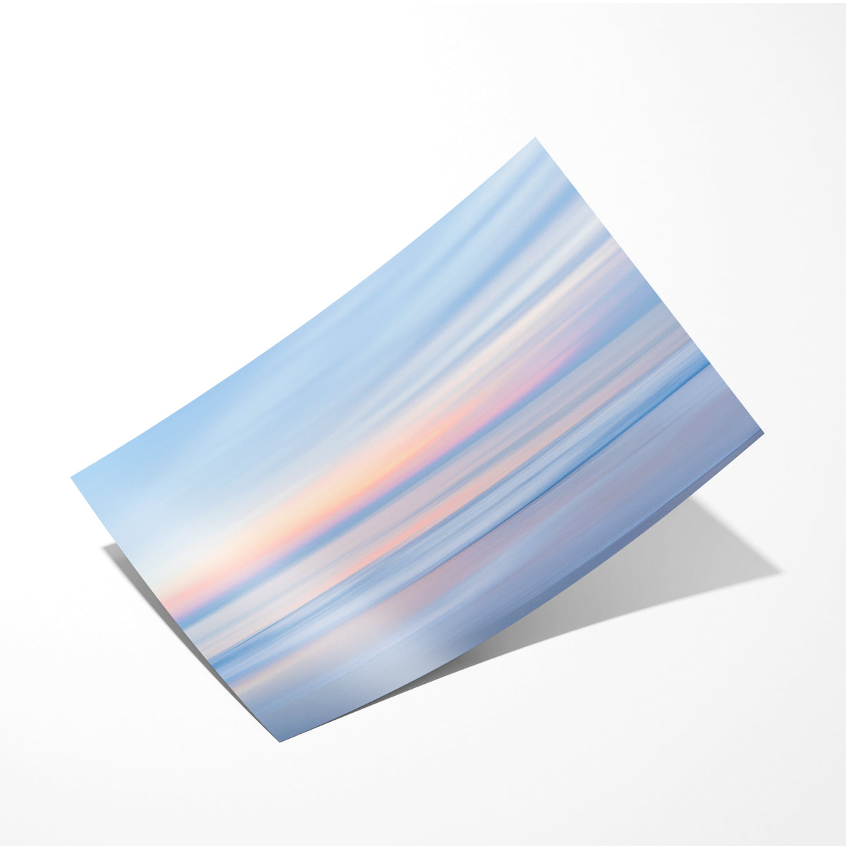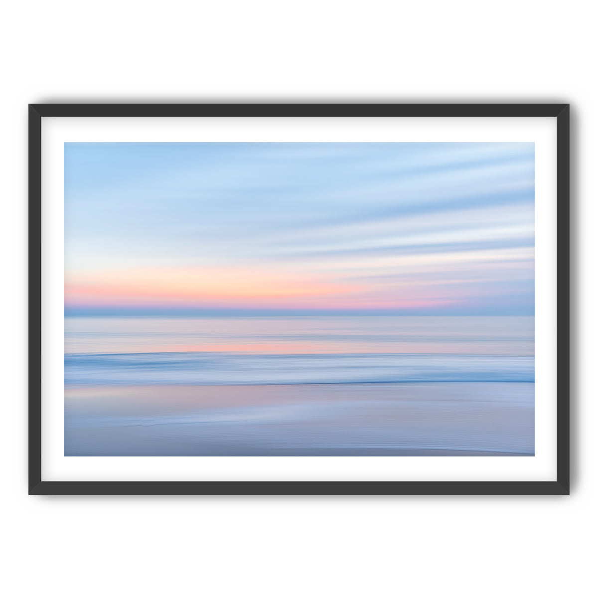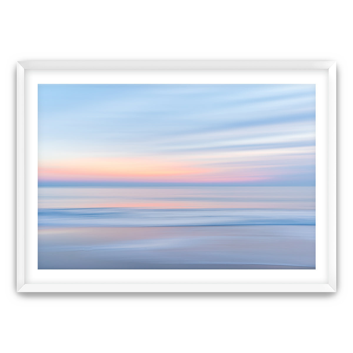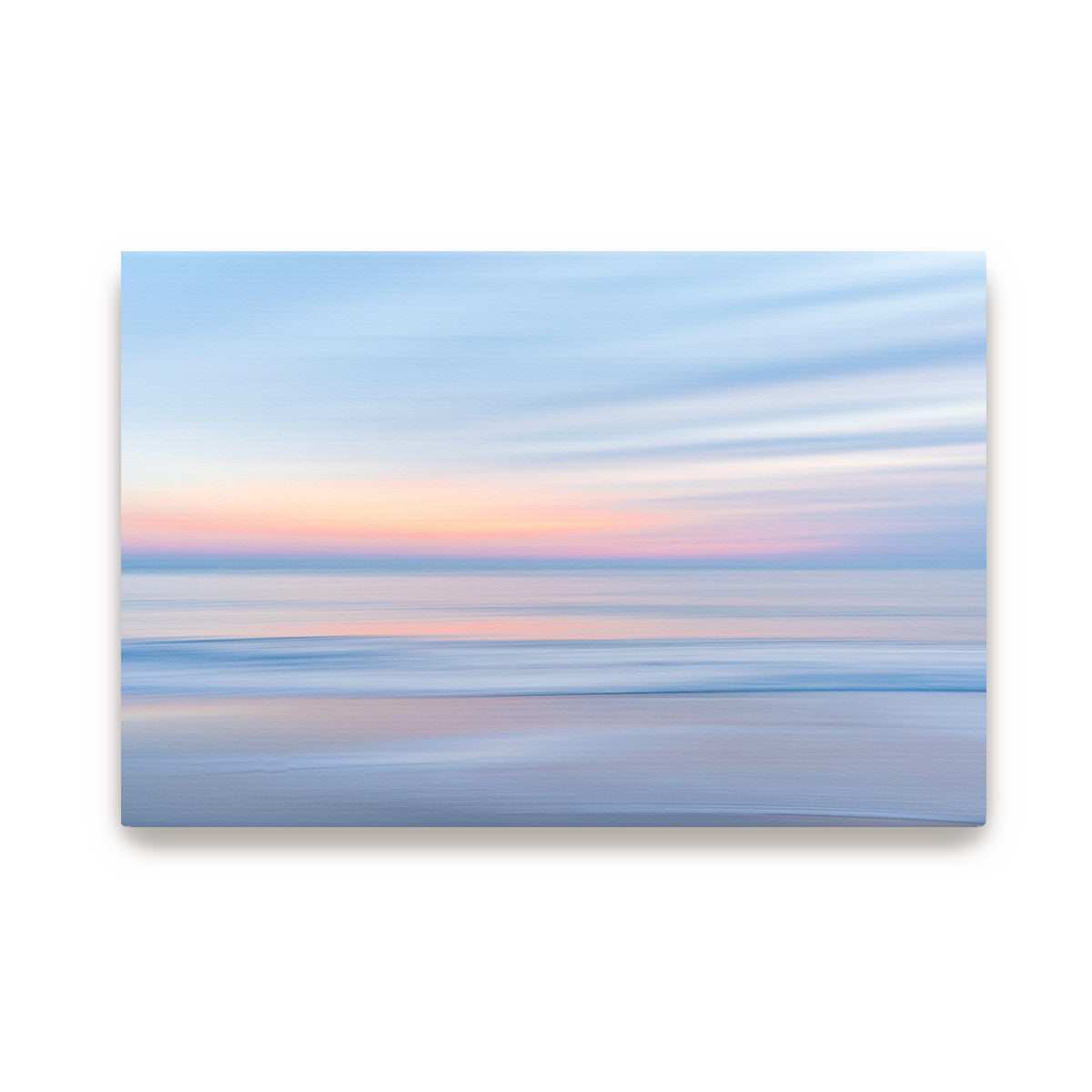 Capture the serenity of a peaceful morning at Rehoboth Beach, Delaware with “Ethereal Morning.” Taken just outside The Henlopen Hotel at the end of the Rehoboth Beach Boardwalk, this photograph exudes relaxation and calm. The soft pastel blue tones and smooth lines, created using a long exposure and camera drag technique, make this image feel soothing and tranquil—perfect for creating a calming atmosphere in any space.