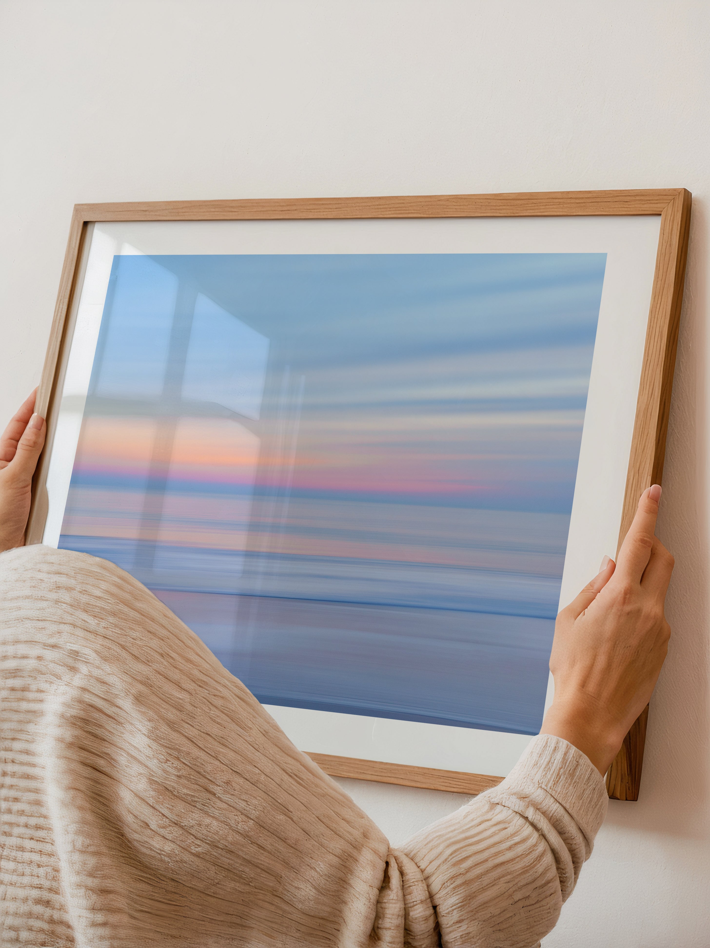 Each frame we craft is a masterpiece in itself, meticulously handcrafted from solid wood to complement and enhance the beauty of your artwork. To safeguard your investment and maintain the integrity of the colors, we use optical-grade, UV-shielding acrylic that provides superior protection while maintaining the clarity of glass. These elegant frames not only add sophistication but also offer long-lasting preservation of your artwork’s vibrancy.