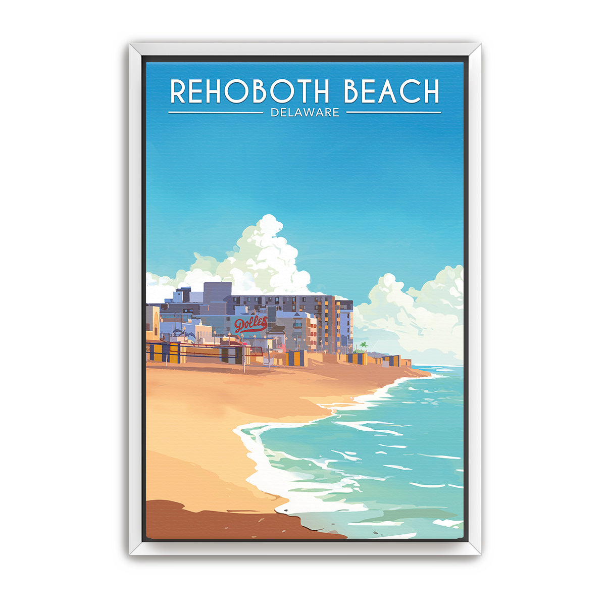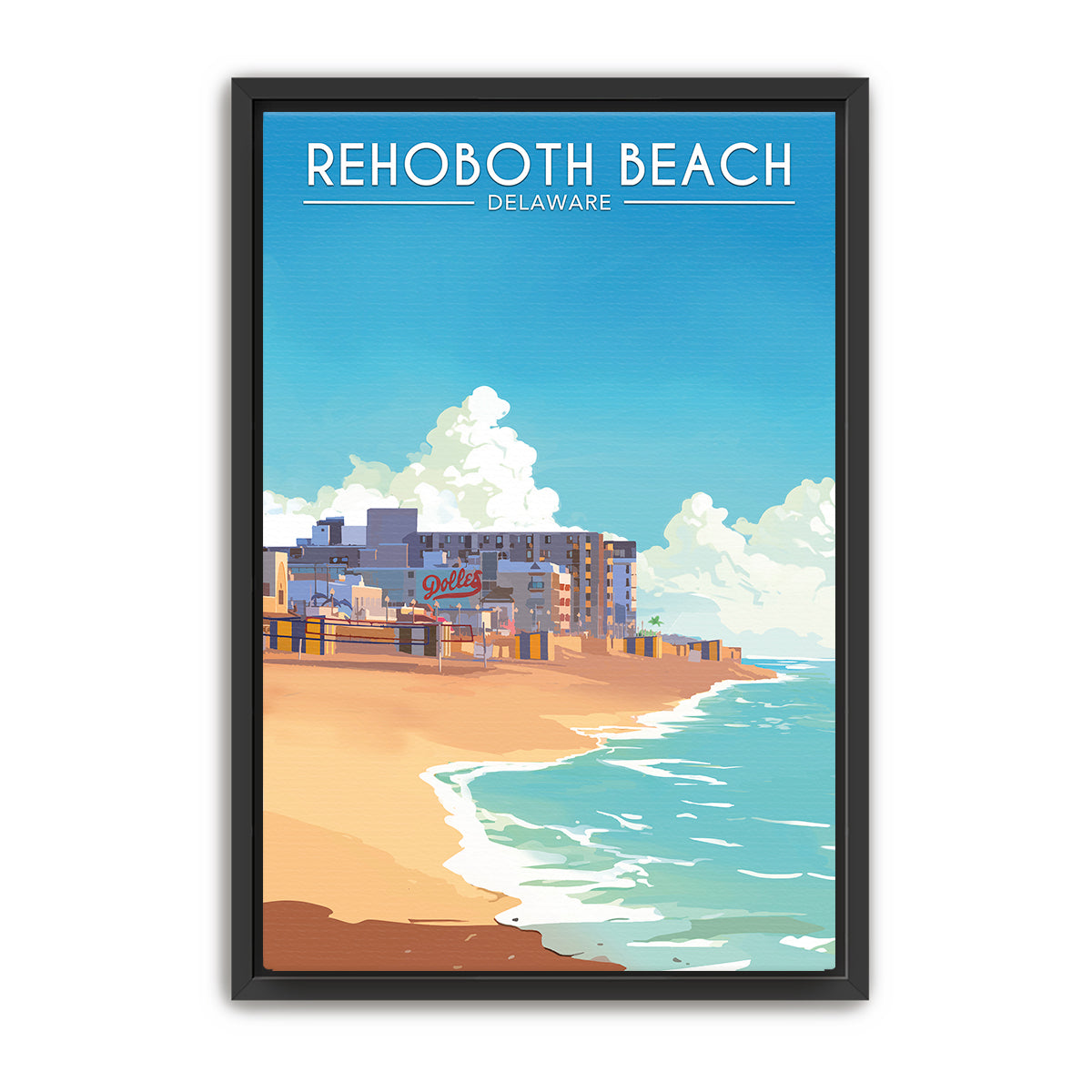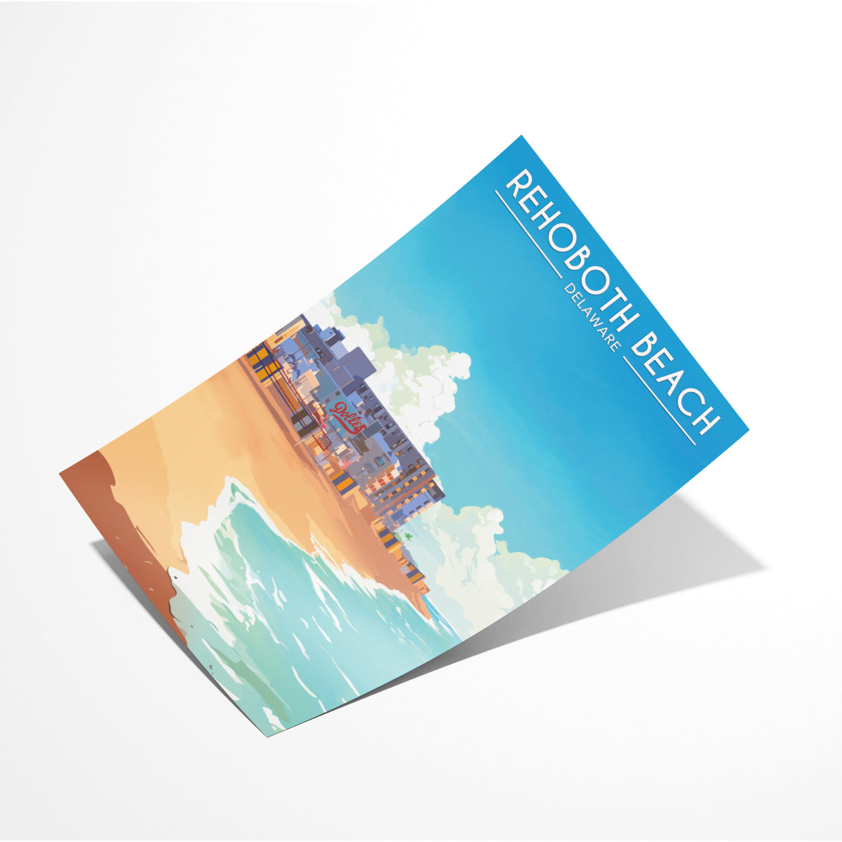 Introducing our iconic Rehoboth Beach travel poster—immerse yourself in cherished memories made at the beach as you gaze upon the renowned Rehoboth Boardwalk from the shoreline, beautifully captured from an original photograph, preserving the essence of Rehoboth Beach, Delaware; this unique poster showcases the famous Dolles sign that is no longer there. Choose from six sizes and relive the magic of your summer vacations by the ocean.