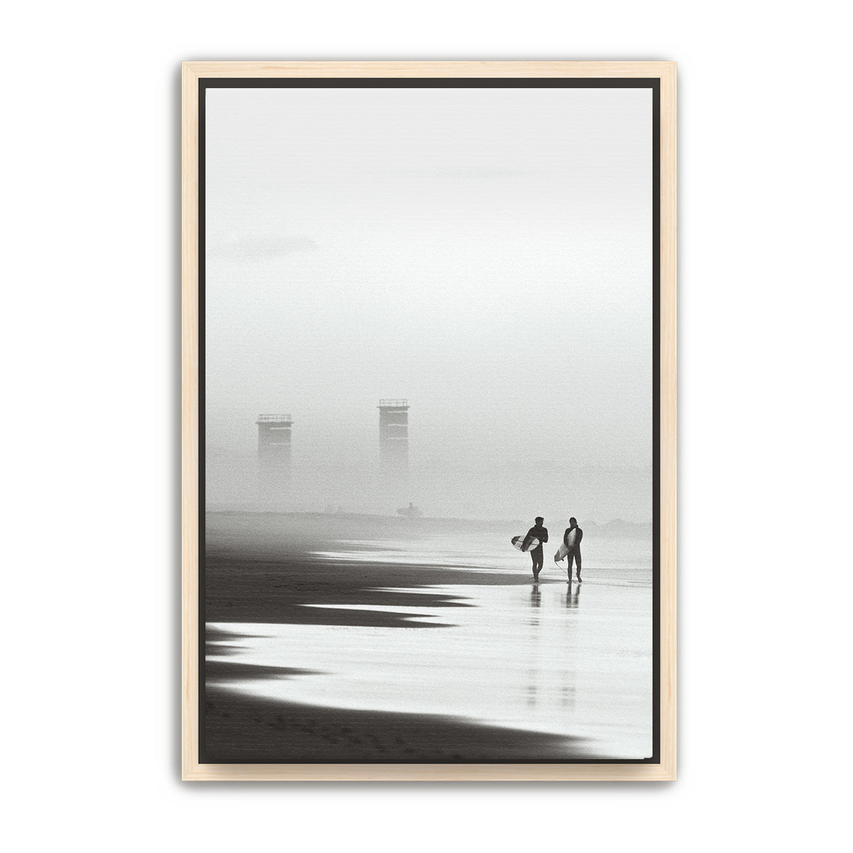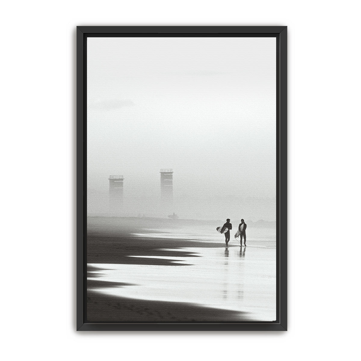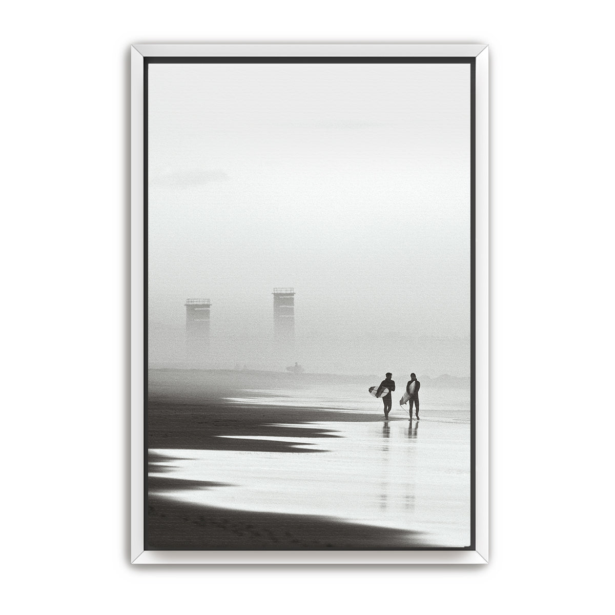 Experience the quiet beauty of resilience and connection with “Twin Towers,” a black-and-white photograph taken during the pandemic at Gordon’s Pond, Delaware. This image features two surfers walking along the shore after a long session, with the iconic World War II watchtowers standing in the misty background. Taken with a telephoto 60mm lens, the scene captures the peaceful solitude of a time when beaches were closed and life felt paused.